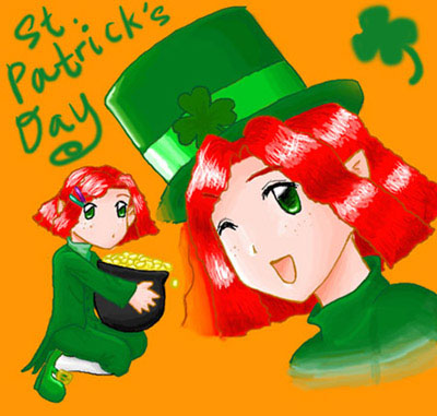 Title: St. Patrick's Day Comments: Yay! St. Patrick's Day! Numbuh 86 as a leprechaun! Is Numbuh 86 ever really this happy? Oh, well, who cares? What I like about this picture: her eyes. What I don't like: um... the inconsistent coloring style. -__-;;; Well, I guess Numbuh 86 never gets pinched on St. Patrick's Day. Oh, yeah, I tried out a new style. Instead of outlining everything in black, I used a dark shade of the color. I hope it looks okay.