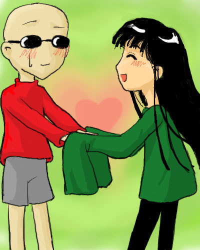 Title: 1/3 Request Comments: Well, I got a request to do a 1/3 picture, so I did. Actually, I must say that the part I like best about this picture is its background, which is kind of sad because my backgrounds are kind of bad. This picture was a lot of trouble because I was originally going to make them hugging, but I realized to my chagrin that I don't know how to draw people hugging. �_�;; Agh, I was trying to make Numbuhs 1 and 3 cute and kiddy, but somehow they ended up just looking weird and deformed.