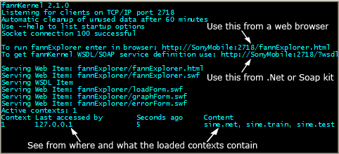 digits of the exponential constant) to communicate with fannExplorer clients. fannKernel does not