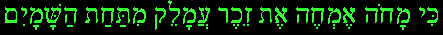 Exodus 17:14 says the following: Ki maho emhe et zekher 'amaleq mittahat hash-shamayim For I shall blot out the remembrance of Amalek from under the heavens Leaving aside the absurdity of this statement (as long as the Bible stands written, Amalek will be remembered), the history of Amalek in Jewish eyes is a long and interesting one. In 1 Samuel 15:9 it is written that Saul showed mercy towards Agag the king of Amalek. His action had two consequences, one immediate and one long-range: Saul lost his crown to David, and one of Agag's descendants was Haman, the minister of Ahasuerus the Persian (but not in the Qur'an: there Haman is the minister of Pharaoh. A slight communications failure occurred when Muhammad was downloading the Qur'an from Allah's Homepage). Haman's plot was to destroy all the Jews. His plot failed, but it was hinted