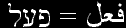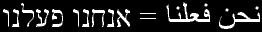 "Since the beginning of the nineteenth century there has been a constant recourse to Arabic for the explanation of rare words and forms in Hebrew; for Arabic though more than a thousand years junior as a literary language, is the senior philosophically by countless centuries. Perplexing phenomenon in Hebrew can often be explained as solitary and archaic survivals of the form which are frequent and common in the cognate Arabic. Words and idioms whose precise sense had been lost in Jewish tradition, receive a ready and convincing explanation from the same source. Indeed no serious student of the Old Testament can afford to dispense with a first-hand knowledge in Arabic. The pages of any critical commentary on the Old Testament will illustrate the debt of the Biblical exegesis owes to Arabic."With that, we'd like to comment on some quick (and basic) similarities between the two languages. As was noted above, Arabic, like Hebrew, has its entire alphabet being made up of consonants. Though the Arabic script is morphologically different from the Hebrew script, the letters are mostly the same. Those who wish to see just how similar the two alphabets are might enjoy viewing an online comparison of the Arabic and Hebrew alphabets. The same site has a bit on the Israelite dialect under discussion here, and even shows which version of the old Phoenecian script that they prefer. After the alphabets comes the triliteral nature of almost every root in either language. The triliteral roots of Hebrew and Arabic give the languages a three dimensional nature that is not found in European languages. One text on Semitic grammar compares this to what is found in the Indo-Europeans languages: "With very few exceptions, the most important of which are the pronouns, every Semitic root, as historically known to us, is triliteral; it consists of three letters, neither more nor less, and these three are consonants. The vowels play only a secondary role. The consonants give the meaning of the word; the vowels express its modifications. [...] The use of prefixes, affixes, and even infixes, is common to both families of languages; but the Indo-Europeans have nothing like this triconsonantal rule with its varying vocalisation as a means of grammatical inflexion."The most basic root of either language is the feh-ayin-lamed (Arabic: faa-ayn-lam) root, which has the meaning "to do": ![]() This spealling also represents the third person, masculine, past tense (or perfect tense) conjugation of the first verb stem of this root. By adding in the vowel sounds, we make an advance towards grammatical meaning. So, "he did" in Hebrew is hu pa'al, and in Arabic is hu fa'ala. Though they are pronounced slightly differently, they are spelled essentially the same way: ![]() For the first person conjugation "I did," Hebrew gives us ani pa'alti and Arabic gives us anaa fa'altu, which again, are essentially the same: ![]() To move to the first person plural "we did," Hebrew gives us anachnu pa'alnu and Arabic gives us naHnu fa'alnaa, which, yet again, are essentially the same in terms of spelling (with alternating vavs and alifs): ![]() And there are many other examples as one moves through the different conjugations and verb stems. These basic structures provide us with the grammatical skeleton for various other roots. To see how this works, we would like to look at the active participle of the first verb stem in each language (mainly because it provides us with the sounds that proponents of Lashawan Qadash claim do not exist in Hebrew). In both Hebrew and Arabic, the active participle has two uses. One is simply as just that, an active participle, signifying one who takes part in the action entailed by the verb root. The other is present tense conjugation of the verb. So, staying with the verb root "to do" (pa'al/fa'ala), the active participle of the first verb stem (Form I) is po'el in Hebrew and faa'il in Arabic: ![]() This signifies "doing" or "one who does". To explain how this serves as a model, imagine you have any triliteral verb root XYZ. The first verb stem (Form I) active participle of that root in Hebrew is vocalized XoYez, and in Arabic it is vocalized XaaYiZ. So, for the KTB root (for to write), "writer" is koteb in Hebrew (modern Israeli Hebrew: kotev) and kaatib in Arabic: