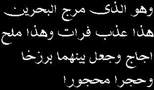 wa huwa allazee maraja al-baHrayni hazaa 'azbun furaatun wa hazaa milHun ujaajun wa ja'ala baynahumaa barzakhan waHijran maHhjooran
