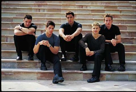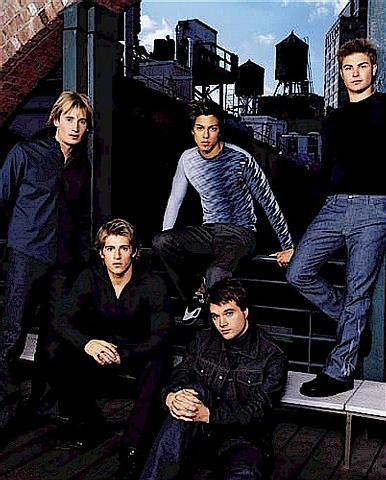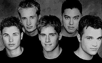| This is when they first started, in 1999! (Above and below) Jason had dark hair, Jeremy had short dark hair with a tiny bit of spike in the front and a few highlights here and there. Gabe had short blonde hair spiked in the front. Nate had short blonde hair. Nathan had a short "army cut" that was curly on top (from his Visa ad!). |