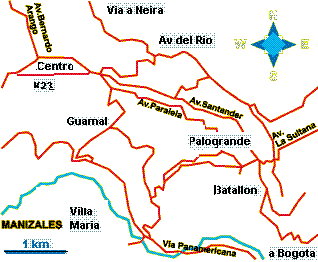(Centro) El transporte entre los hoteles del Centro y el sector de Palogrande (zona universitaria) tarda entre los 10 y 15 minutos, en taxi o 20 y 30 minutos en buseta. |