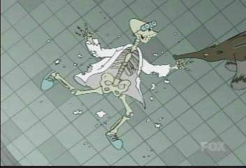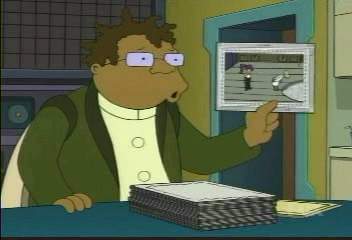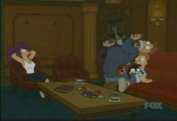 | FUTURAMA CUTS � SEASON 2 17: ANTHOLOGY OF INTEREST I C4 PREMIERE = OCT./NOV. 2001, OR EARLY APR. 2002 uncut premiere = 03.05.03, 03:00 THE ONE WHERE Professor creates the Fing-Longer, which helps someone operate machinery at long distances. He�s also made a What-If Machine � ask a what-if question and it generates a video simulation answer. It�s just not very long. So, we see three What-Ifs in this episode: 1. What if Bender was 500 ft tall and weighed 7 bn tons? 2. What if Leela was a little more impulsive? 3. What if Fry had never come to the future? -------------------- DEFINITE CUTS POSSIBLE CUTS I never saw this episode on C4 � in fact, until recently I thought it had been banned. But Aslate on Peel saw it and listed some cuts, so major credit is due there. All those cuts are in red. There were a few things in the huge-Bender segment which would probably have been cut, then the second, when Leela butchers practically all of PX, C4 have butchered the episode! It�s horribly ironic, I know. The third wasn't greatly offensive, unless you're Al Gore perhaps. -------------------- FIRST WHAT-IF: I don�t reckon the censors would have liked BENDER Bite my colossal metal ass! or his reference to nude beaches as he asks the what-if question. And there were a few objectionable bits: Bender�s ass-propulasion system, the 4000 deaths at the Hanson concert and Zoidberg eating a guinea pig alive; but I don�t see how the story could have progressed without them. -------------------- SECOND WHAT-IF: In this episode Leela sees how it would be if she were more impulsive� as it turns out, she would murder everyone to get her way. Professor has just told Leela that she�ll inherit his vast fortune after he dies. Seeing a chance to speed up the process, Leela kicks the Professor into his pit full of man-eating anteaters: PROFESSOR (as he�s attacked by the anteaters) Oh, you�ve killed me, you�ve killed me! LEELA Oh my God, what have I done? PROFESSOR I just told you, you�ve killed me! (the anteaters finish with Professor, leaving just his skeleton, coat and glasses, which one anteater coughs up) -------------------- Hermes finds out that Leela was the murderer. With no one else around, Leela kills Hermes too! Zoidberg, meanwhile, is looking for clues, while behind his back Leela grabs the emergency axe and goes back to Hermes: HERMES (from other room) What are you hacking off?! Is it my torso? It is!! My precious torso!!! [overdubbed with silence, to make the next line pointless] ZOIDBERG (shouting to other room) Hermes, quiet! I�m deducing things! -------------------- Bender finds out about Leela�s murders, but blackmails her (actually, he prefers the word �extortion�. The X makes it sound cool). So she kills him with the microwave, then resolves to stop killing. But after Amy makes a disparaging remark, she just can�t resist one more. -------------------- Then, �detective� Zoidberg gathers everyone else (Fry, Leela, Scruffy, Cubert and Nibbler) together to gradually solve the mystery. But whenever anyone is on the verge of naming her, Leela switches off the lights and kills them � Scruffy, Cubert, Nibbler and Zoidberg all die this way [and I don�t know how they could show someone with a spear through their heart on a �kids�� show]. -------------------- Afterwards, Fry (eventually) works out that Leela did it. And to make sure Fry won�t talk, Leela seduces him. LEELA So Fry, what do you think of the impulsive new me? FRY I like it! LEELA Good. Now let me just get the lights� (switches them off) FRY Aaaaaaaaaaaargh!! � � I really like it! But the censors didn't... Not until May 2003, anyway, when they showed AOI I uncut! Huzzahs are in order. |