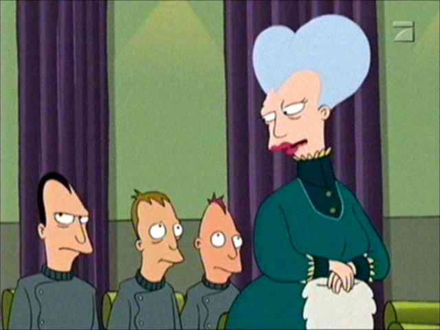| 6: A FISHFUL OF DOLLARS THE ONE WHERE Fry discovers he's a billionaire because his savings have been accruing interest for 1,000 years. Caught up in the excitement of his riches, he squanders his fortune to buy an unopened can of anchovies � extinct since the year 2200. What he doesn't realize is that Mom, the head of a mega-conglomerate, will do anything -- even use Pamela Anderson's head in a jar � to get her hands on those anchovies. [Foxworld synopsis] POSSIBLE CUTS Thanks to Daniel for emailing me the last two of these three: -------- After Mom has transformed from being a lovable old woman into the evil, foul-mouthed megalomaniac we know and love: MOM Holy crap, that bastard's itchy! (snaps fingers) Walt, cream soda! WALT Right away, mother. -------- MOM (to one of her sons) (yells) Get his Pin number, you idiot! (calm) Now, I'm off to some charity BS for knocked-up teenage sluts. -------- MOM (to Fry) (yells) What?! Listen, you little bastard, I control the robot oil business and I won't let you ruin me. How much do you want? (takes out her chequebook) -------- These weren't definitely cut, but I really couldn�t see C4 keeping them in. |