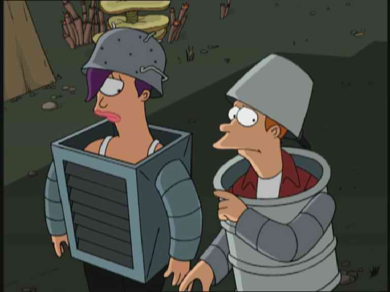 | FUTURAMA CUTS - SEASON 1 5: FEAR OF A BOT PLANET THE ONE WHERE Fry, Leela and Bender make a delivery to a planet full of human-hating robots, so need to dress up (badly) as robots and go into the planet�s capital. But then Bender realises that he might like it there� DEFINITE CUTS � none, it seems. --------- |