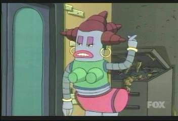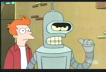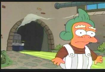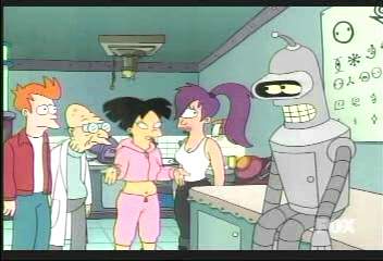 | FUTURAMA CUTS - SEASON 1 13: FRY AND THE SLURM FACTORY THE ONE WHERE Fry and Bender find the golden bottle-cap inside a can of Slurm (it�s highly addictive�) and win PX a tour of their bottling plant and the chance to party with Slurms McKenzie, the drink�s mascot. But is Slurm all it seems? Ooh, let me answer that: - no. ----------------- DEFINITE CUTS ----------------- Bender is sick: AMY Then take some echinacea, or St John�s Wort. PROFESSOR Or a big fat placebo! It�s all the same crap. (Bender coughs) ----------------- Bender and Fry have taken the Professor�s F-ray device: FRY Try it on me. (Bender shines it at his hip area) Ow!! My sperm. BENDER Wow� ----------------- A man-bot in the form of a fem-bot (who, for the sake of argument, let�s call a tran-bot) walks past and starts talking to Bender: TRAN-BOT One more upgrade and I�ll be more lady than you can handle! Why you so stupid, Stupid? BENDER Hey, bite my shiny metal ass! TRAN-BOT You couldn�t afford it, honey! (clicks fingers and walks away) ----------------- (Fry gets a can of Slurm from the fridge and drinks it. He starts to hold his throat, and there�s a shot of Professor, Bender and Leela with the back of Fry choking in the background) LEELA Fry, are you all right? ----------------- After the Grunka-Lunkas� song: GLURMO (the Willy Wonka-ish one) Hey! I don�t pay you to sing! You just used up today�s bathroom break! GRUNKA-LUNKA Hardass. GLURMO I heard that! (Grunka-Lunka whimpers and walks away, boat goes into tunnel, then we see the boat travelling along the river again) |