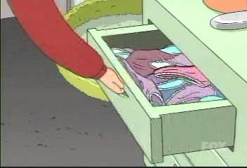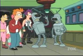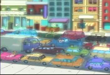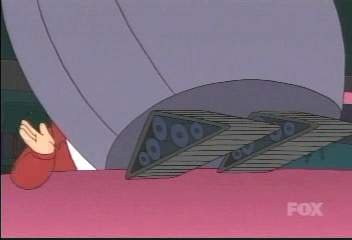 | FUTURAMA CUTS - SEASON 2 7: LESSER OF TWO EVILS - C4 PREMIERE 14.08.01, 18:00 - uncut premiere 01.03.03, 01:15 THE ONE WHERE While at the Old New York 20th-century museum, Leela, Fry and Bender hit a robot while driving a car. But this robot turns out to be an almost-exact replica of Bender - Flexo. So he joins PX, but after a while Fry starts to mistrust Flexo, especially when a very valuable delivery goes missing... DEFINITE CUTS ------------------------- Fry, Leela and Bender are in Past-o-rama, a park that is meant to be an exact replica of 20th-century New York: ROBBER Gimme your wallet, or I�ll cut you! FRY (thinks it's a joke) Hahaha! Hey Leela, get a picture of me being �mugged�! -------------------------- LEELA Do you know what it [the parking sign] means? FRY Yeah, I asked a cop once. It means �up yours, kid�. -------------------------- (Fry, Leela and Bender watch a hologram about 20th-century traffic jams: SOUND EFFECTS (shouting motorists) Move it, crap-for-brains! / Get off, bastard-man! [Credit: Teral of Peel] --------------------------- Fry has just taken the car out of the museum when he hits something: BENDER Ohh, I think I got whiplash. LEELA You can�t have whiplash, you don�t have a neck. BENDER I meant ass whiplash! --------------------------- Flexo (who they hit) asks Fry to give him a backrub to make up for it: FLEXO That�s it, a little lower though FRY Er, I can�t get any lower. FLEXO I�ll say � you�re rubbing my ass! (he and Bender laugh and high-three [rather than high-five]) --------------------------- At the robot strip-club � a large robot goes onto the stage: BENDER Hubba hubba, she is built! In Mexico, I believe. FLEXO And that ain�t silicon � it�s tungsten, and plenty of it! FRY (trying to fit in) Er, yeah, look at that exhaust fan. BENDER / FLEXO Urgh! Argh! BENDER Pervert. FLEXO (to robot dancer) Yoohoo! (inserts money) DANCER Thanks, moderate spender. Please select erotic transaction. FLEXO Yeah, how about a lap dance for my pal [Fry] here? (Dancer moves towards Fry) FRY No, no, that�s alright, really, I- (Dancer starts vibrating, crushing his head) Ow! Ow! Ow! Ow! And that�s why he�s wearing bandages in the next scene. ---------------------------- FRY (talking about how much he dislikes Flexo) He drinks, and smokes, and posts naked pictures of me on the internet! ---------------------------- Later, when PX are all searching for Flexo on the ship when the tiara goes missing: (Fry is searching for him in Leela�s underwear drawer) FRY Aha! (opens drawer) Er, searching, hmm� (fishes around in the drawer, then the door opens) Yes, C4 once again protected us from the almost-pornographic images of a person putting their hands into an underwear drawer! (But they reinstated it in 2003) ---------------------------- At the end � Flexo has been arrested, and neither Bender nor Leela got their hands on the tiara: FRY Well, you guys might both be losers, but I just made out with that radiator woman from the radiator planet! LEELA �Fry, that�s a radiator. FRY Oh. Ahem� Is there a burn ward within 10 feet of here? |