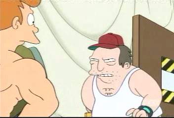 | FUTURAMA CUTS SEASON 3 4: PARASITES LOST C4 PREMIERE 09.10.02, 18:30 THE ONE WHERE After Fry eats a bad sandwich at a fuelling station, worms' eggs hatch and worms start living inside his body, making him smarter and more muscular. Leela is asked to distract Fry while the rest of PX go into his body in to ask the worms to leave, using their net virtual-reality suits to shrink themselves. But while spending the day with Fry, Leela isn�t so sure that changing him back to his old self would be the best idea� DEFINITE CUTS ----------------- Outside, Fry and Leela walk past a construction site. Leela stops: LEELA Ugh! It's that jerk from the truck stop. Let's cross the street and blend in with that crowd of pimps. FRY I don't think so. [Walks up to Sal] Sir, I believe you owe this lady an apology. LEELA Fry, no. He's bulging with what could be muscles. [credit � Impossible and Aslate for the cut, and alt.tv.futurama on Google for the lines] ----------------- It seems like all the cuts so far have been for sleazy-sex things like 'pimp' and 'porno', while violence and language (apart from 'bastard') stay in. They haven't spoiled the storyline with cuts yet this season, which I welcome, but this 'pimps' joke was witty and still shouldn't have been censored. Thought for the week - maybe C4 are concentrating most of their censorship resources on Alias, from which they cut 5 and a half minutes of the first episode. Showing a violent series like that in the early-evening is dumb, but at least puts into perspective how inoffensive Futurama is in comparison. |