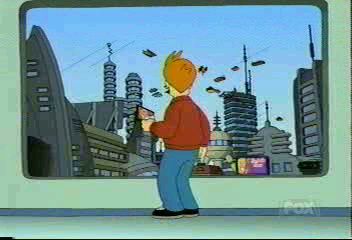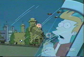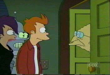 | FUTURAMA CUTS - SEASON 1 1: SPACE PILOT 3000 THE ONE WHERE Fry is frozen, and 1000 years later awakes to find the world a very different place. Leela, working at the Cryonics Lab, tries to install his �delivery boy� job chip, but he was a loser as a delivery boy in the 20th century and doesn�t want to live that life again. He escapes Leela and meets Bender. They survive a suicide booth, before Leela finds them again and, realising she�s unhappy with her job, gets rid of her job chip. The three of them find Professor Farnsworth, Fry�s only remaining relative. He runs a space delivery company, and makes them his new crew. So Fry�s� a delivery boy? All right! ------------------ DEFINITE CUTS ------------------ This change was by Fox, not C4: �The man who entered the pneumatic tube before Fry asked the tube to take him to 'JFK Junior Airport.' After the death of John-John, the line was changed to 'Radio City Mutant Hall' for the subsequent airings.� ------------------ This one was by C4: Being held in the Hall Of Criminals, Fry wants Bender to snap their cell's bars off. Bender remarks "You're full of crap, Fry" [Replaced with "You make a persuasive argument, Fry"] and walks away, but his head gets stuck to a wire hanging from the ceiling, and his circuits get scrambled. He turns back around and says "You make a persuasive argument, Fry," then tries for the prison bars. As Fry cheers him on, Bender repeats that he can't do it, but finally, two of the bars snap off. [Credit: SamuelXDiamond and The Low-Bandwidth Futurama Site] |
