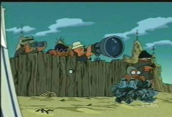 | FUTURAMA CUTS - SEASON 2 5: WHY MUST I BE A CRUSTACEAN IN LOVE? (page 1 of 2) - C4 PREMIERE 07.08.01, 18:00 THE ONE WHERE Dr Zoidberg goes beserk while PX are at the gym - it's the mating season on his home planet. So PX go to his planet, but Zoidberg fails to attract women. However, can Fry help him? No, I don't think so either DEFINITE CUTS BY C4 DEFINITE CUTS BY SKY ONE A lot got censored here by both channels - for some reason, "jelly" is C4's new 'bad' word! ------------------------------------------ Leela is complaining that Fry and Bender are lazy and sit on the couch all day: LEELA Look at you guys! No offence Fry, but you�ve become a fat sack of crap! [sound dipped] FRY Sack? ------------------------------------------ Prof Farnsworth explains why Zoidberg went mad at the gym: PROFESSOR It must be mating season for Zoidberg's people. A chaotic time when his behavior is dictated by the tiny brain in his rump. FRY Eyuccch! PROFESSOR We, by which I mean you, will have to rush him to his ancient homeworld, which will shortly erupt in an orgy of invertebrate sex. FRY Oh baby, I'm there! LEELA Fry, do you even understand the word "invertebrate"? FRY Nope. But that's not the word I'm interested in. No need to pack pants, people! [Lines from The Low-Bandwidth Futurama site] ------------------------------------------ On Zoidberg�s home planet he explains about the frenzy: FRY Who�s the lucky lobesterina? ZOIDBERG I don�t know yet, but I shall attract one this afternoon with an erotic display! LEELA It�s amazing that your people can fall in love so fast. ZOIGBERG Love? That word is unknown here. I�m simply looking for a female swollen with eggs to accept my genetic material. FRY You and me both, brother! (Leela and Bender make a �groan� face) ZOIDBERG Ah! My old scuttling ground! ------------------------------------------ At the beach, where Zoidberg is about to perform his erotic display: FRY Hey, I wonder if these guys are here to watch the erotic display too! (he points to five lobster-perverts with telescopes and binoculars, wearing anoraks and dark glasses/hats to protect their identities) ------------------------------------------ Some weird cutting here � Sky cut out a line but C4 didn�t, then C4 cut out a line but Sky didn�t! Edna, who secretly loves Fry, has invited him round to �discuss Zoidberg�: EDNA Hello, Fry! Can I interest you in some surf and turf? [a kind of food, see below] FRY No thanks, I just came to tell you that Zoidberg�s really great. He�s got male jelly coming out the wazoo. EDNA Well, that is where it comes out, but jelly isn�t everything� I know Zoidberg�s magical words were really yours! SURF AND TURF: Aslate of Peelified Futurama says: "Surf and turf is Fish and Meat (Surf=Fish, Turf=Beef, gettit?). Although it's used to mean something else (more 'sensual') in the episode." ------------------------------------------ Same scene � Zoidberg has discovered Edna trying to seduce Fry. Weirdly, Sky censored this, but C4 didn�t. ZOIDBERG (to Fry) I challenge you to Claw-Claw! (�doom� music) FRY English, please? ZOIDBERG A fight to the death! (more �doom� music) EDNA And if you survive, we�ll make sweet love! (�mega-doom� music) FRY Aaaaaaaaaaaaaargh!!! CLICK 'NEXT' FOR MORE CUTS FROM THIS EPISODE |