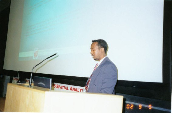 Musse Presents his Paper during the Second International Symposium on GIS/Spatial Analysis in Fishery and Aquatic Science, University of Sussex, United Kingdom.