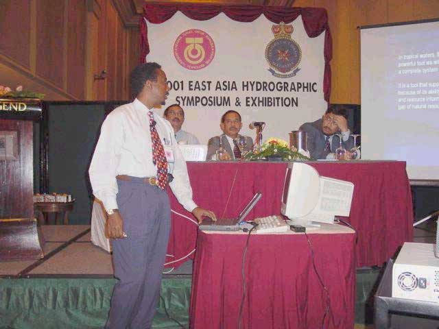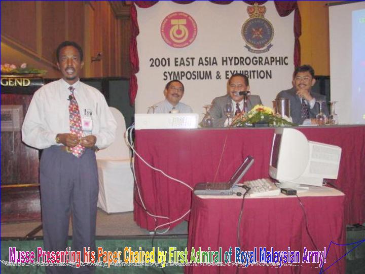 Musse Presenting a Paper at 2001 East Asia Hydrographic Symposium and Exhibition Chaired by First Admiral of Royal Malaysian Army.