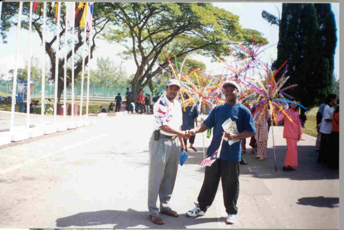 Musse & Mr. Billyamin (President of International Students' Association) during Cultural Show in University of Putra Malaysia, August, 2001.