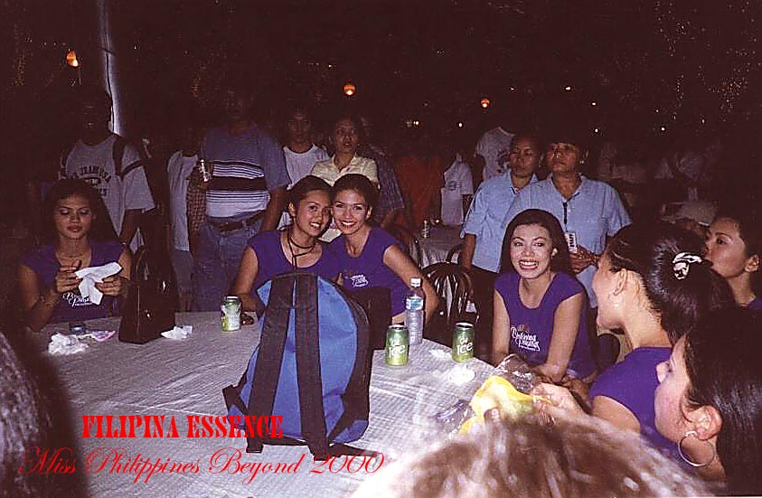 Binibining Pilipinas 2001 delegates pose for Miss Philippines Beyond 2000 & Filipina Essence con-tributor David N. during the 'SMB' (Sama-sama Magagandang Binibini Street Party) held Satur-day at the Araneta Quadrangle Feb. 24, 2001. The delegates readily signed autographs and ex-changed pleasantries with hordes of pageant fans. |