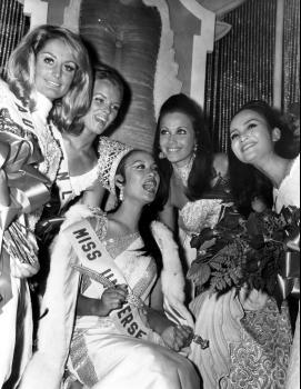 Gloria Diaz (left) right after she won the Bb. Pilipinas Universe title in '69. |