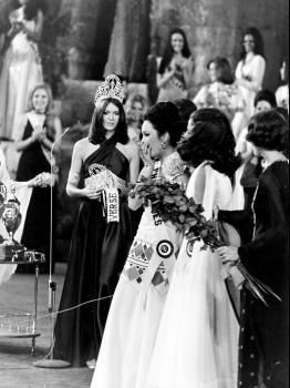 Margie Moran won the Miss Philippines title in 1973 without prior knowledge and consent of her parents. In Greece, she instantly hit headlines upon her arrival where she was also voted Miss Photo-genic. Margie won the Philippines' se-cond Miss Universe crown; beating Amanda Jones of the USA, 1st Runner-up; Aina Walle of Norway, 2nd Runner-up; Maria del Rocio Madrigal of Spain, 3rd Runner-up; and Limor Schreibman of Israel, 4th Runner-up. |