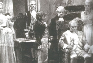 héroe de la aviación y un grupo de aristócratas y sus criados se