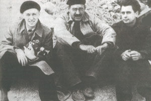 Roman Karmen, Ernest Hemingway y Joris Ivens en la España