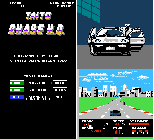 ¿Para qué otros juegos sirve este control? Yo creía que servía sólo para Arkanoid, pero hace poco descubrí otro juego que lo utiliza: CHASE H.Q., también de Taito. Aquí están unas capturas.