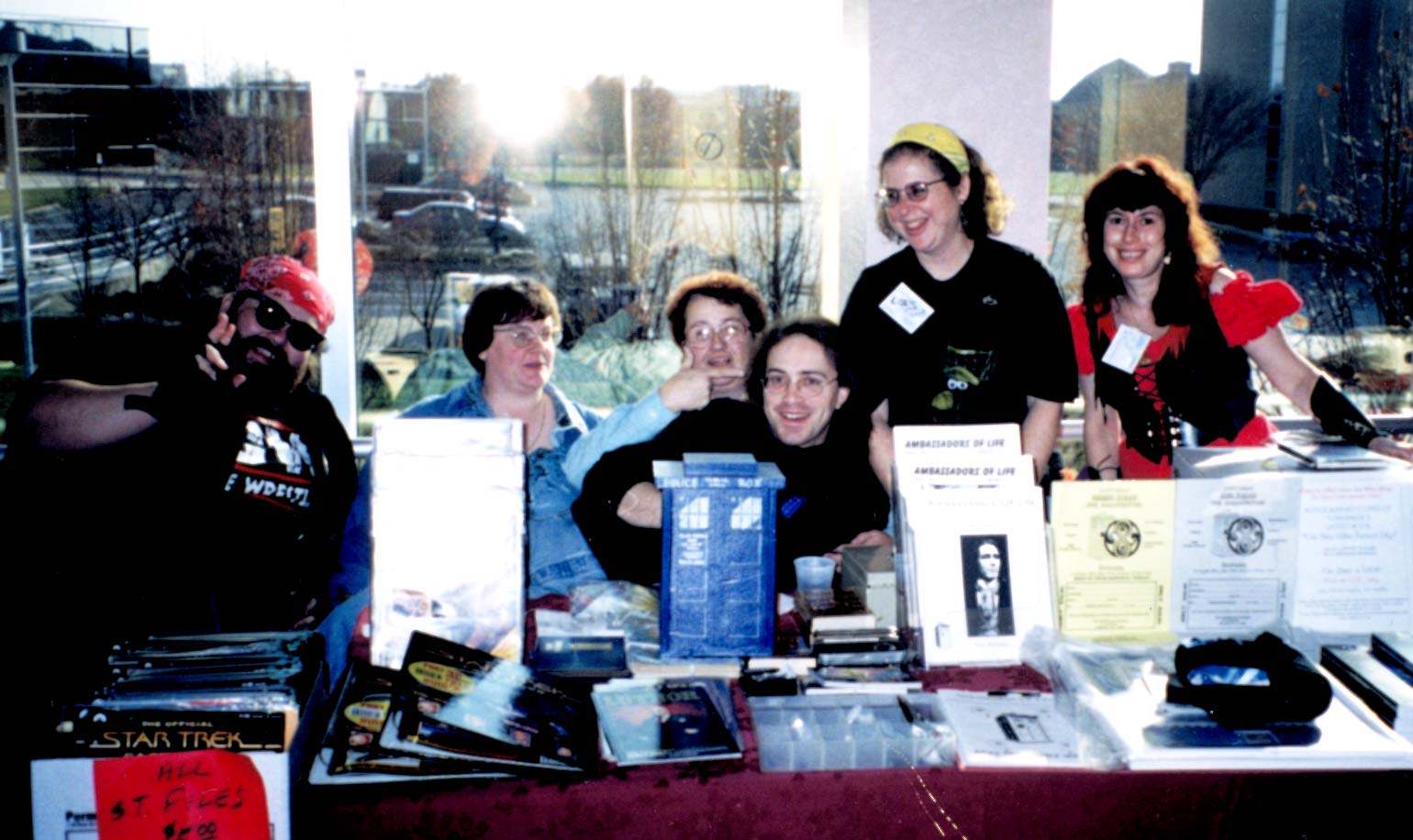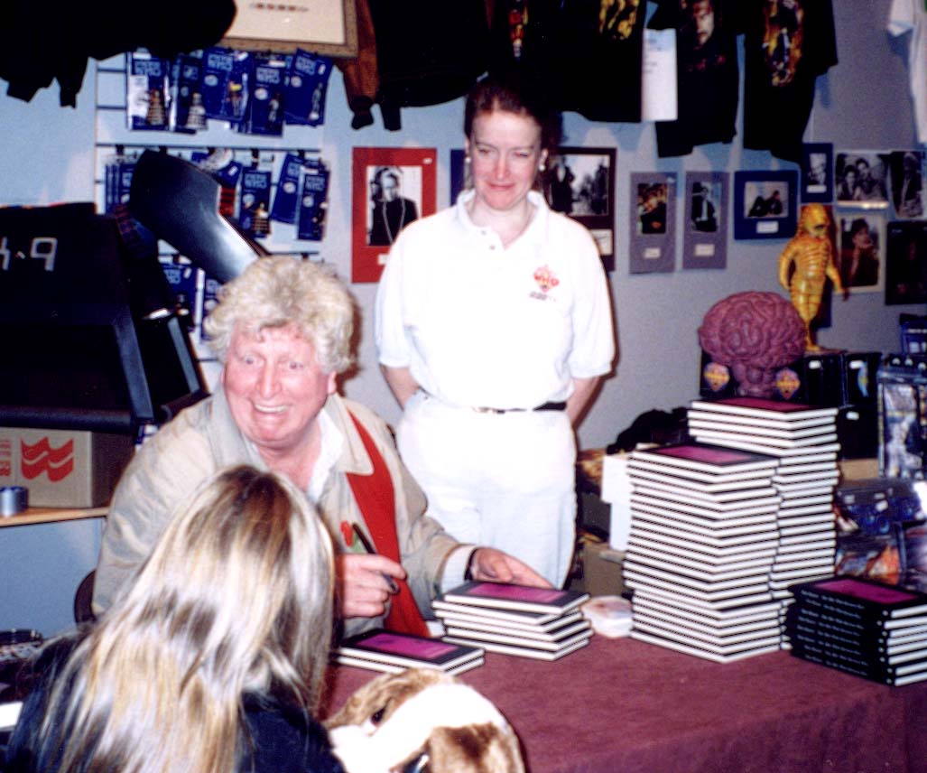 Geli's Nov.get-together@ Supercon '99 Julie Schwartz with tired Geli member Kenny Baker (R2D2) Tom Baker with Alexandria from Dr. Who Shop