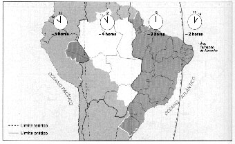 na medida do poss�vel, coincidir com limites estaduais. Assim, h� quatro fusos