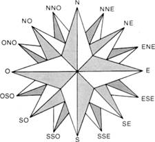 dire��o correspondente da rosa-dos-ventos, para termos as