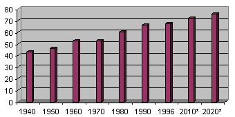 aumento percentual da popula��o urbana em rela��o � popula��o rural h�