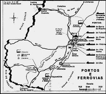 principalmente com a Estrada de Ferro Vit�ria-Minas, com o objetivo de exportar