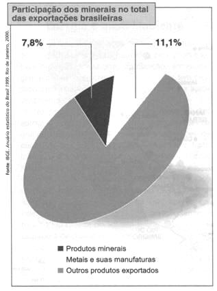 minerais no total das exporta��es brasileiras e os valores obtidos com as