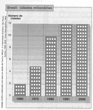seguir mostra a multiplica��o das cidades com mais de um milh�o de habitantes,
