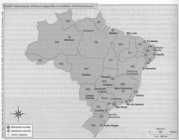 brasileira, a lideran�a das diferentes redes urbanas cabe �s metr�poles, que