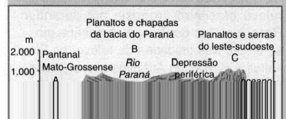 perfil topogr�fico acima, os "Planaltos e Serras de Leste-Sudeste" e