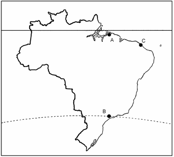 O processo de urbanização brasileiro não se deu de modo uniforme. Desenvolvendo-se de maneira desigual, estabeleceu entre as cidades brasileiras uma hierarquia, a rede urbana, que vai das metrópoles – nacionais e regionais – até as cidades locais. De acordo com o mapa acima, as letras A, B e C apresentadas referem-se, respectivamente, às metrópoles: