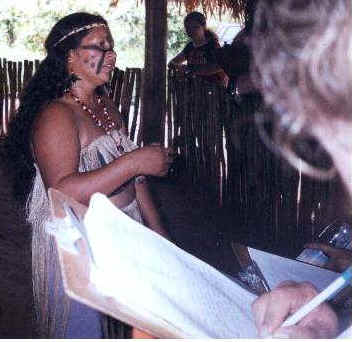 DONA DIRCE RESPONDE PERGUNTAS Ainda dentro da oca, Dona Dirce* faz comentários sobre o cotidiano dos índios, bem como responde às perguntas de alunos. Em um de suas falas, ela crítica a atuação de índios que deixam a aldeia para estudar prometendo oferecer algum retorno para a tribo e depois não os auxilia em nada. * Dirce líder comunitária dos Kaingang Fotos e trabalho:- Everton Henrique |