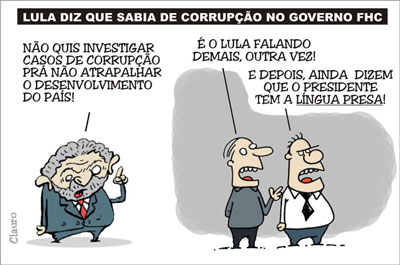 clicar nas imagens Lula diz que sabia da corrupção do governo FHC,mas... O que mencionou o ministro a respeito da menoridade penal O que citou o jornal Correio Popular,ref.maioridade penal O que diria a famoso idolo dos jovens ciberglobal,Michael Jackson E o trabalho infantil, como está no governo Luis Inácio LULA. E as reformas como vai no governo LULINHA. FMI e M.Jackson surpresinha para o Brasil. E as distribuição de cargos, PMDB no acordo... EMPREGOS no Brasil, tem para quem???? Confiram as 10 Charges mais votadas