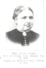 Ellen remarried to Samuel Coon on 15 Mar 1860 and had four more children with him. She died 25 Sep 1897. Samuel died 13 MAR 1907. Both are buried at Oakgrove Cemetary in Mitchell, Mitchell, IA.