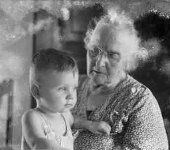 | Amelia (Minnie) Christianna Mallder Dailey, my great grandmother, and me, Bill Phillips, about 1939. |