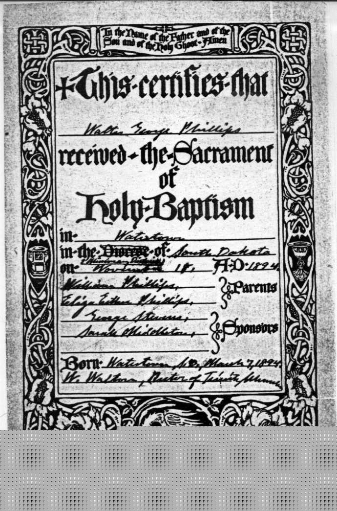 Certificates of Baptism, Trinity Episcopal Church, Watertown, Codington, SD