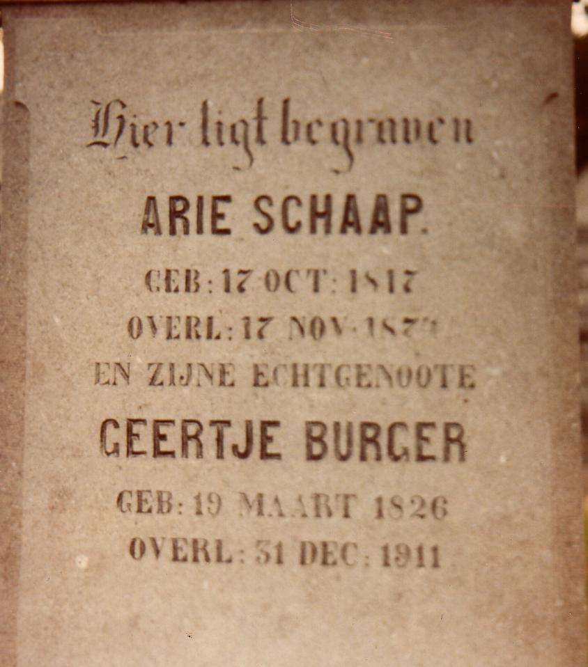 Below is the tomb stone in the Netherlands of the third child of Otto and Lysje, namely Arie Schaap; also Arie's oldest son's tomb stone.