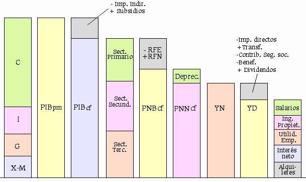 de donde, si se restan los impuestos indirectos y se suman los subsidios, se obtiene el PIB a costo de factores: