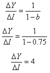 Este multiplicador indica que por cada unidad que aumenta la inversión el ingreso se incrementará en 4. Luego, si la inversión aumenta en 20, entonces el ingreso aumentará en 80.