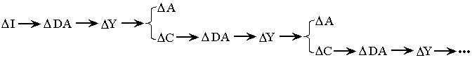 Cuando ocurre alguna variación en la inversión, ésta afecta al nivel de ingreso y este a su vez al consumo, afectando nuevamente al ingreso, y así se da una cadena de gastos secundarios en consumo, esto por ser el consumo una función del ingreso.