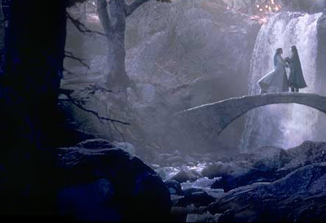 Avanzas por el camino y éste te conduce por un pequeño puente de piedra que cruza el río. Pronto de encuentras atravesando unos campos de cultivo y llegas a una pequeña aldea con casas de puertas redondas debajo de las colinas. Has llegado a Hobbiton, en la Comarca.