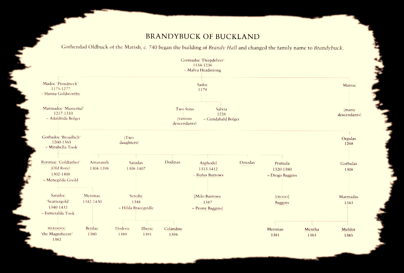| Los Brandigamo | genealogía de la família Hobbit Brandigamo, parientes de Merry (Meriadoc Brandigamo) |