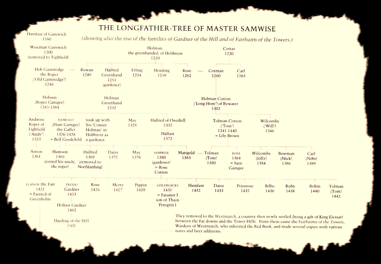 | Parientes de Sam | Genealogía del Hobbit Samsagaz Gamyi |