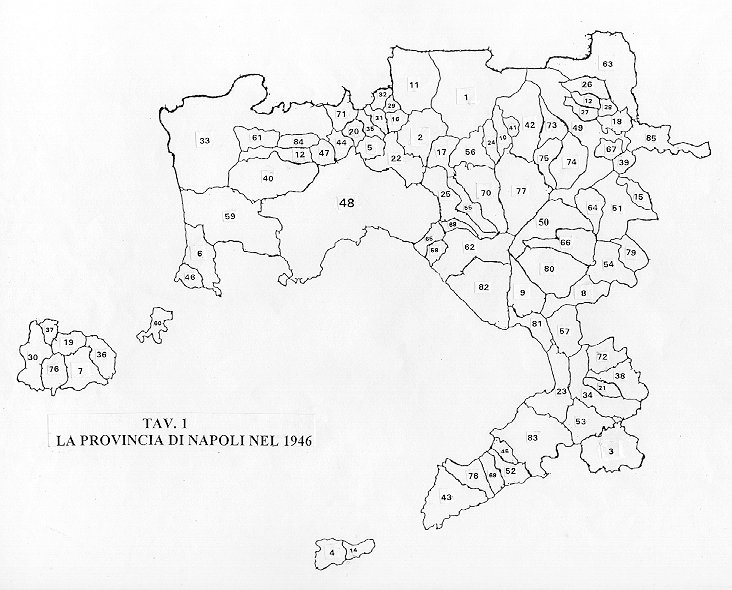 45. Meta di Sorrento 46. Monte di Procida 47. Mugnano 48. Napoli 49. Nola 50. Ottaviano 51. Palma Campania 52. Piano di Sorrento 53. Pimonte 54. Poggiomarino 55. Pollena Trocchia 56. Pomigliano 57. Pompei 58. Portici 59. Pozzuoli 60. Procida 61. Qualiano 62. Resina 63. Roccarainola 64. S. Gennaro Vesuviano 65. S. Giorgio a Cremano 66. S. Giuseppe Vesuviano 67. S. Paolo Belsito 68. S. Sebastiano al Vesuvio 69. S. Agnello 70. S. Anastasia 71. S. Antimo 72. S. Antonio Abate 73. S. Vitaliano 74. Saviano 75. Scisciano 76. Serrara Fontana 77. Somma Vesuviano 78. Sorrento 79. Striano 80. Terzigno 81. Torre Annunziata 82. Torre del Greco 83. Vico Equense 84. Villaricca 85. Visciano |