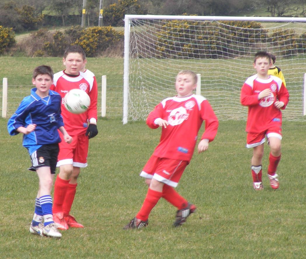 (15/04/08) The Red Dragons won a close game with Menai Bridge Tigers by two goals to one and as on Saturday they started slowly with the Tigers taking an early lead. The Dragons were soon back on terms through a well struck shot from Jamie but had a couple of let-offs as Jack cleared off the line then a post came to their rescue. The Dragons' second goal towards the end of the first half was worthy of winning any game, started with a defence splitting pass from Ryan that sent Jamie away down the right and his perfectly delivered cross was nicely finished by Jack. The second period was goalless with Iwan going closest for Glantraeth with a header that was just over.