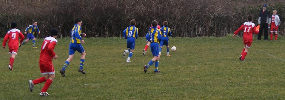 (29/03/08) Against a strong Bodedern side the Under 13s gave a good first half display in this morning's game at Malltraeth and were only three down at the interval then came close to pulling a goal back soon after the break. From then on it all went downhill in what has become a familar story as an avalanche of second half goals gave the visitors victory by eleven goals to nil. It must be frustrating for the coaches to see goals so easily conceded after the early play has so often looked promising.